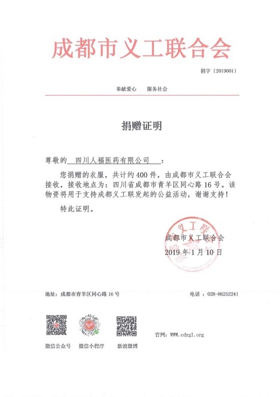 1月10號(hào)下午2:00,成都義工聯(lián)合會(huì)的工作人員來到公司,對(duì)物資進(jìn)行搬運(yùn),負(fù)責(zé)后續(xù)物資的送達(dá)工作,負(fù)責(zé)人彭大哥表示,人福公司的員工們真的很有愛心,他僅代表聯(lián)合會(huì)和色達(dá)人民表示衷心的感謝!